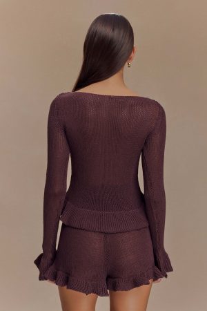 Add a touch of charm to your everyday life with the ELEANOR Knit Frill Cardigan. a playful piece with romantic detailing. Featuring a scoop neckline. delicate shell buttons. and ruffled hems at the sleeves and waist. this cardigan brings a feminine twist to classic knitwear. The non-functional front placket keeps the silhouette clean and polished. while the unlined finish offers lightweight comfort. Pair with the for a co-ord that’s equal parts cosy and chic.