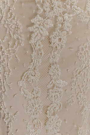 This style is intricately hand-beaded with glass beads. a process that requires up to 200 hours to complete. A dedicated team of 15 work in harmony. with each bead meticulously threaded and sewn by hand. ensuring every detail is flawless.