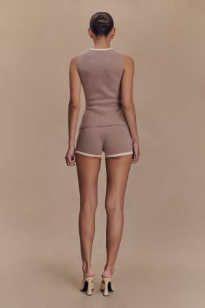 Elevate your casual wardrobe with the JULIANNE Contrast Knit Shorts. a stylish blend of comfort and flair. These high-waisted shorts feature a mini length that elongates your silhouette. while the contrast waistband and hem add a striking visual touch. Crafted from a soft knit fabric. they offer both a cozy feel and a chic aesthetic. Pair effortlessly with the for a coordinated ensemble that’s perfect for relaxed weekends or casual outings with a stylish twist.