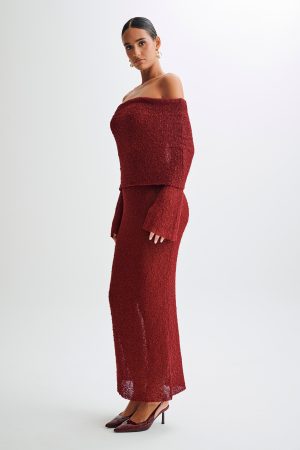 Be the first to review “Marisol Off Shoulder Boucle Maxi Dress – Plum” Cancel reply