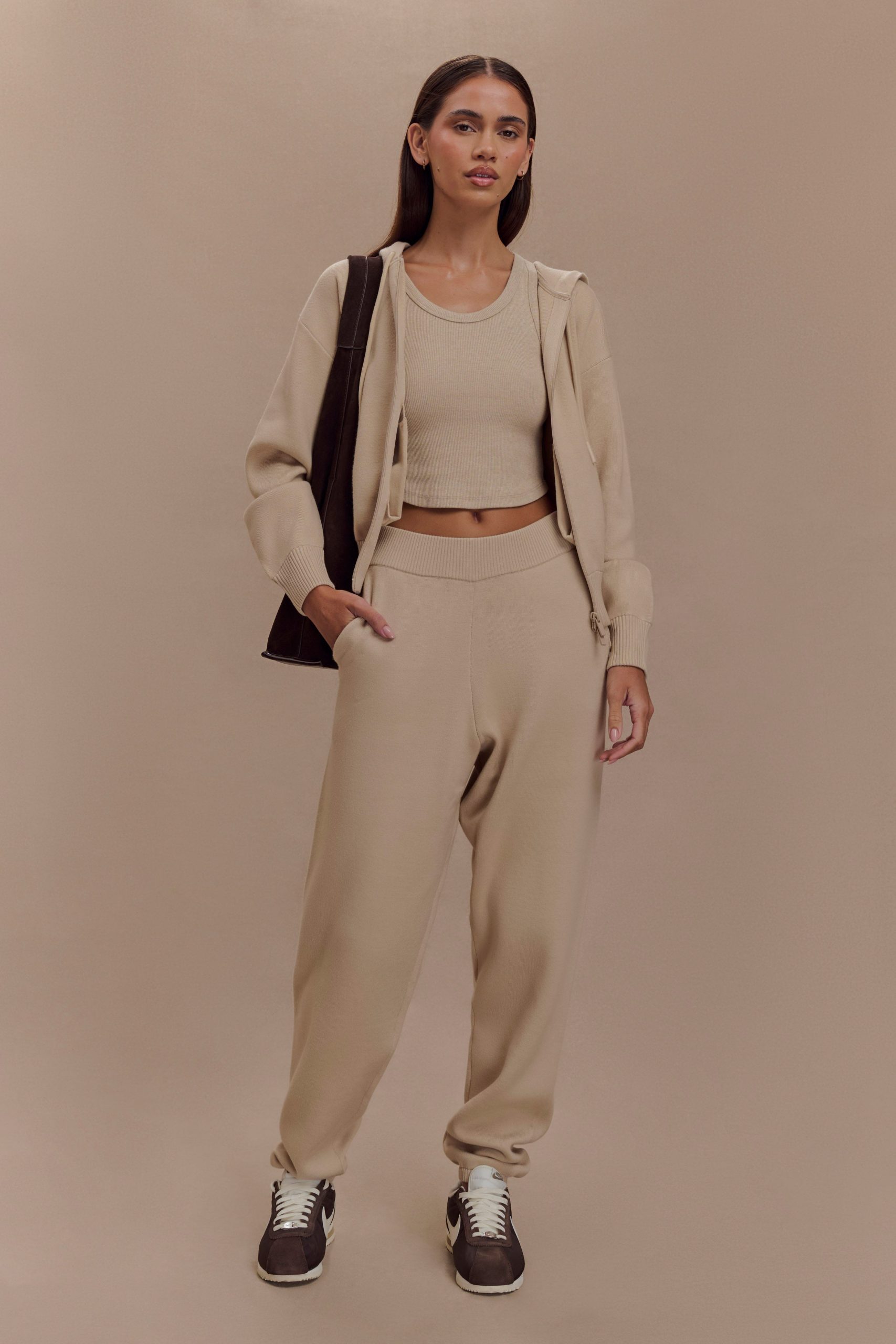 The SAMI Knit Jogger offers a relaxed yet stylish fit. perfect for laid-back days or casual outings. Featuring a mid-rise design. these joggers provide a comfortable fit with a ribbed waistband and cuffs that add a touch of texture. The blouson shape gives them a modern. tapered look. while the side pockets offer practicality and convenience. Whether you’re lounging at home or out for a quick errand. these joggers are the ultimate in comfort and style. Pair them with the for a complete. cozy ensemble that exudes effortless cool.